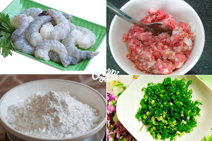 > Để ướp tôm, bạn cho vào 1 muỗng cà phê muối, 3 muỗng cà phê đường, 1/2 muỗng cà phê bột ngọt, 1 muỗng cà phê hạt nêm và 1/2 muỗng cà phê tiêu, trộn đều để tôm ngấm gia vị và ướp chúng trong 20 phút.> Tương tự, thịt bạn cũng ướp với 1 muỗng cà phê muối, 3 muỗng cà phê đường, 1/2 muỗng cà phê bột ngọt, 1 muỗng cà phê hạt nêm và 1/2 muỗng cà phê tiêu. Sau đó, trộn thật đều và ướp trong 20 phút.