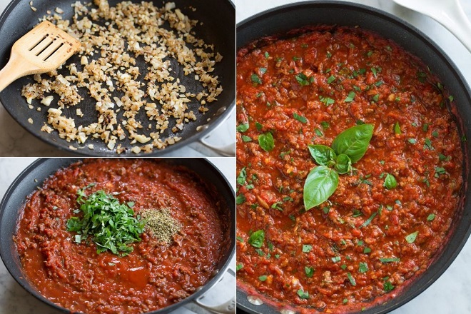 Bước 2: Chế biến nước sốt cà chua thịt bò bằm