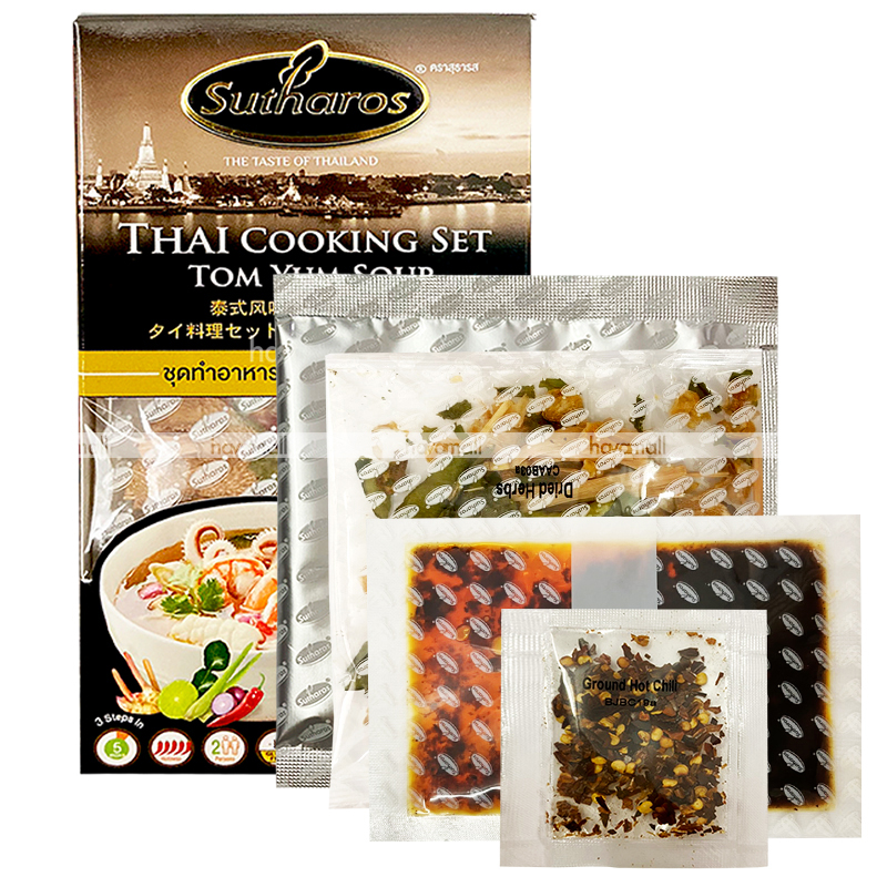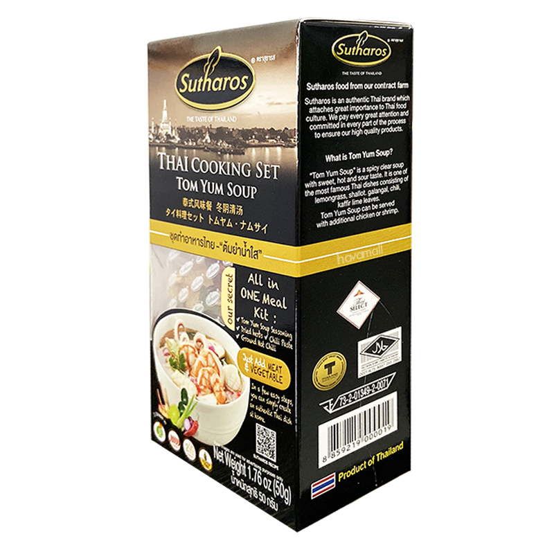 • Gia vị súp Tom Yum Sutharos (truyền thống) – Gói trọn bí quyết của người Thái, sự hòa quyện tinh tế giữa các thảo mộc sấy khô và gia vị truyền thống của Thái Lan.