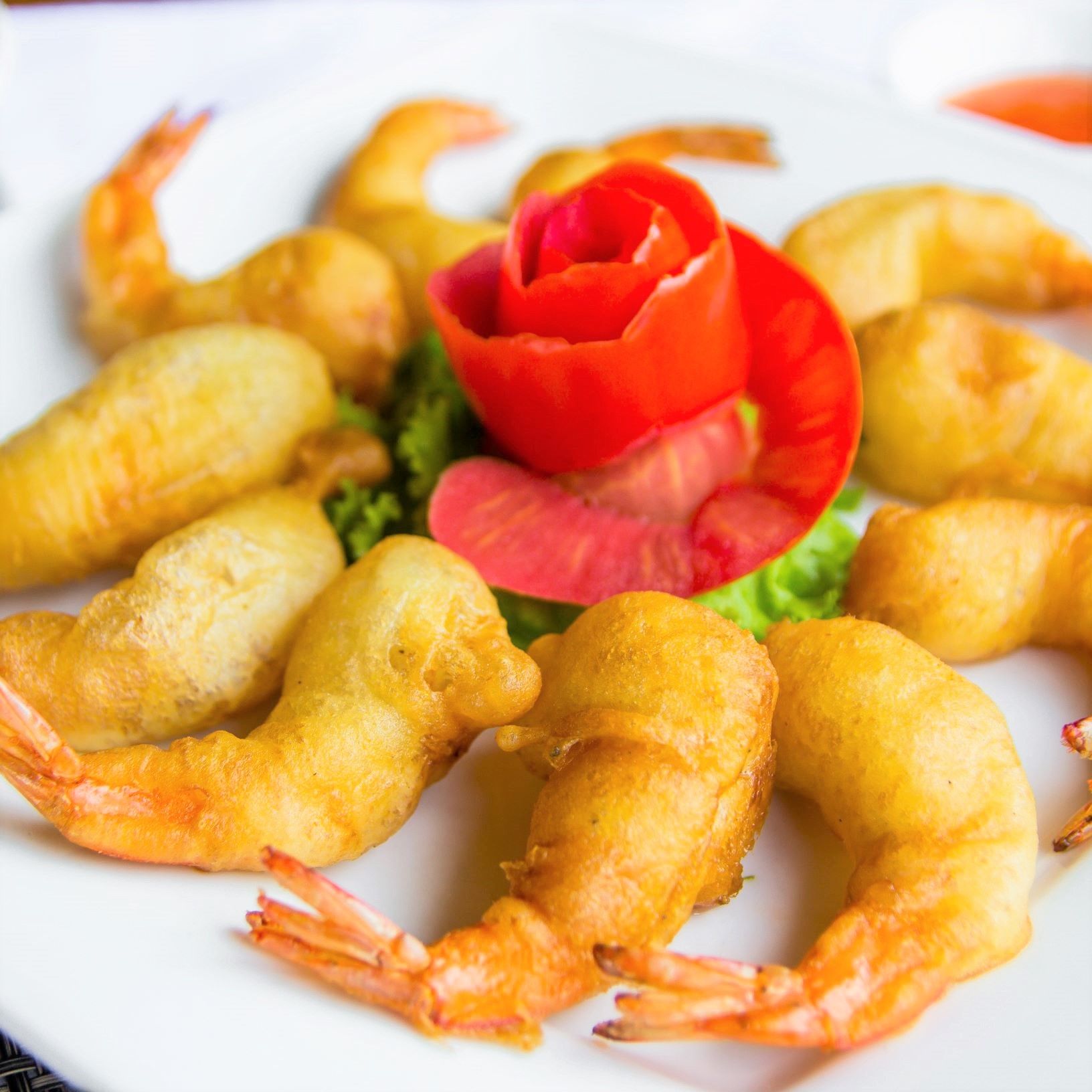 – Nhiệt Độ Dầu Chuẩn Xác – Dầu chiên cần được duy trì ở mức 170°C đến 180°C. Ở nhiệt độ này, lớp vỏ sẽ ngay lập tức phồng nở và khô lại, tạo ra một lớp màng ngăn dầu thấm vào bên trong nguyên liệu, giữ cho tôm hoặc rau củ bên trong luôn mọng nước và ngọt thanh.