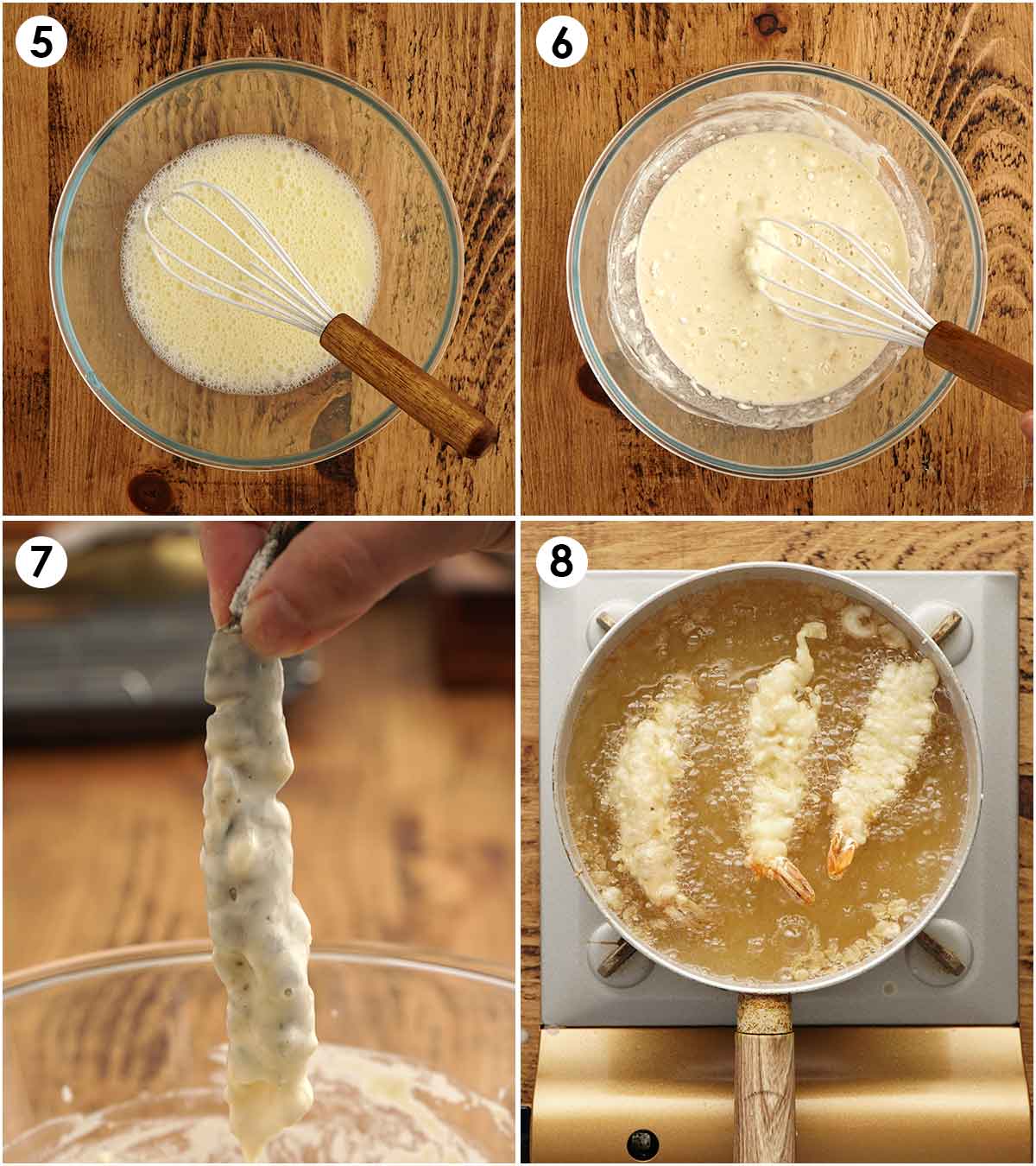 – Kỹ Thuật Khuấy Bột Sơ Sài – Không nên đánh bột quá kỹ. Việc để lại một vài cục bột nhỏ li ti trong hỗn hợp sẽ giúp tạo ra những “vảy giòn” (Tenkasu) bám quanh thực phẩm, làm tăng diện tích bề mặt và độ hấp dẫn cho món ăn.