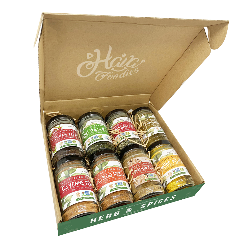 - Gia vị là một thành phần không thể thiếu để tạo nên các món ăn ngon với hương vị đầy hấp dẫn. Bạn có thể thêm gia vị vào các món súp, rau củ xào, các món mì xào, hoặc các món thịt, cá, hải sản chiên, nướng để tăng thêm hương vị.Vì vậy Combo Gia Vị Thảo Mộc bao gồm: ( ỚT CAYENNE, TACO, BỘT QUẾ, BỘT NGHỆ, XUYÊN TIÊU, NGÒ TÂY, BỘT NGÒ, HƯƠNG THẢO KHÔ ) sẽ là trợ thủ đắc lực cho bạn khi bạn cần 1 món ăn ngon nhé.