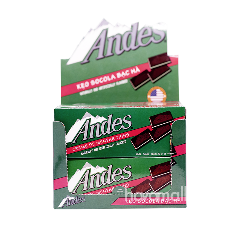 Socola Andes là sản phẩm lâu đời từ năm 1950 của Mỹ. Socola Andes Mint là một sự pha trộn tinh tế giữa socola cùng với hương vị bạc hà truyền thống, phù hợp với mọi lứa tuổi.