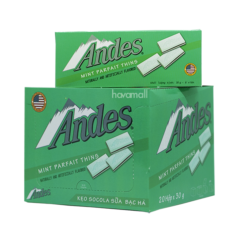 Kẹo Chocolate Nhân Bạc Hà Sữa Andes Hộp 20x30g – Andes Mint Parfait Thins 20x30g