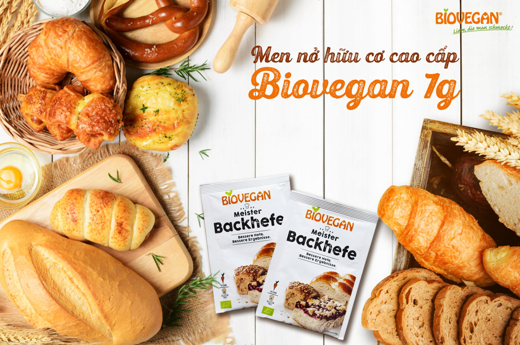 Men nở hữu cơ cao cấp Biovegan 7g giúp các chị em có thể dễ dàng tự tay làm thành công tất cả các loại bánh (Bánh mỳ, bánh bao…) với hương vị thơm ngon.