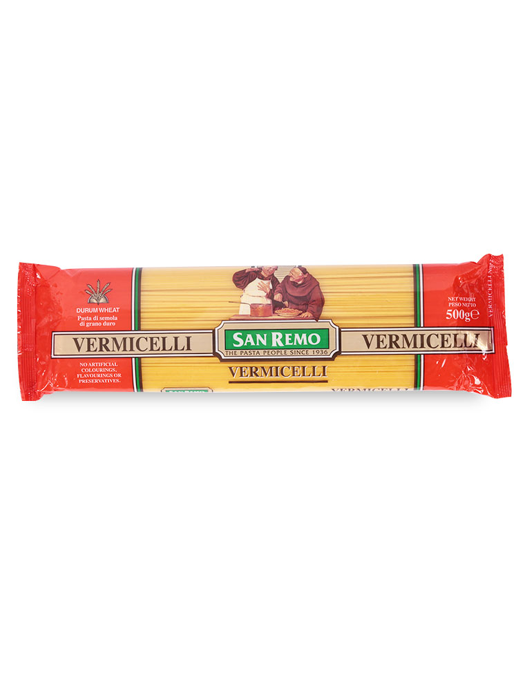 Thông số sản phẩm Miến Vermicelli San Remo Số 2 Gói 500 G được làm từ các nguyên liệu tự nhiên gồm: lúa mì, trứng, đậu nành,… không chất bảo quản độc hại, mang đến sự an tâm cho người tiêu dùng. Sản phẩm là sự kết hợp độc đáo giữa công thức truyền thống và quy trình chế biến hiện đại đem lại chất lượng tốt nhất.
