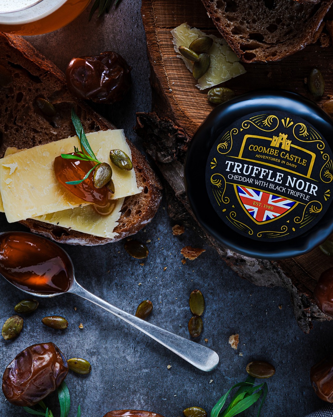 Thương hiệu Coombe Castle – biểu tượng của phô mai cao cấp Anh Quốc từ năm 1980 – vẫn giữ trọn tinh thần “adventures in dairy”: tôn trọng truyền thống nhưng không ngừng sáng tạo. Truffle Noir Cheddar là minh chứng rõ ràng cho triết lý ấy – một sự kết hợp tinh tế giữa cheddar cổ điển và nấm truffle đen sang trọng của châu Âu, tạo nên phong vị hòa quyện giữa Anh và Pháp, cổ điển mà hiện đại, mạnh mẽ mà tinh tế.