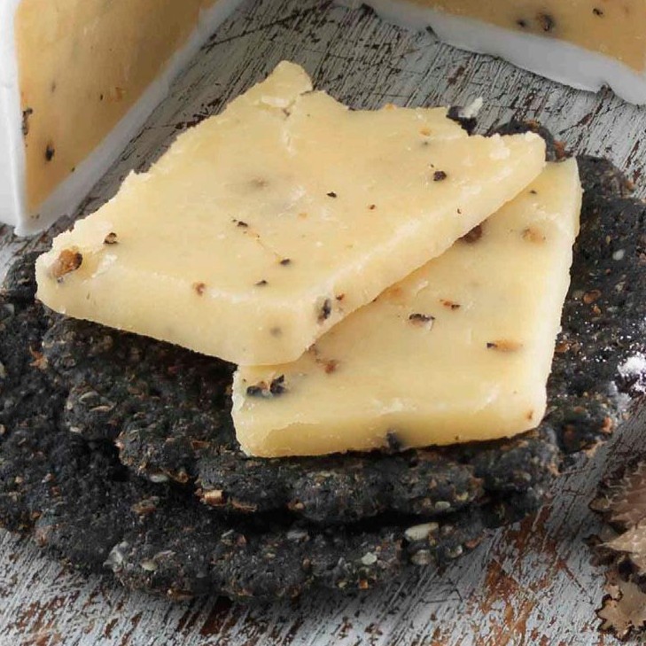Home Shop SẢN PHẨM THEO QUỐC GIA Nhập Khẩu Ý Phô Mai Cheddar Sữa Bò Và Nấm Truffle Đen Nhập Khẩu Anh Quốc 150g – Coombe Castle Truffle Noir Cheddar with Black Truffle