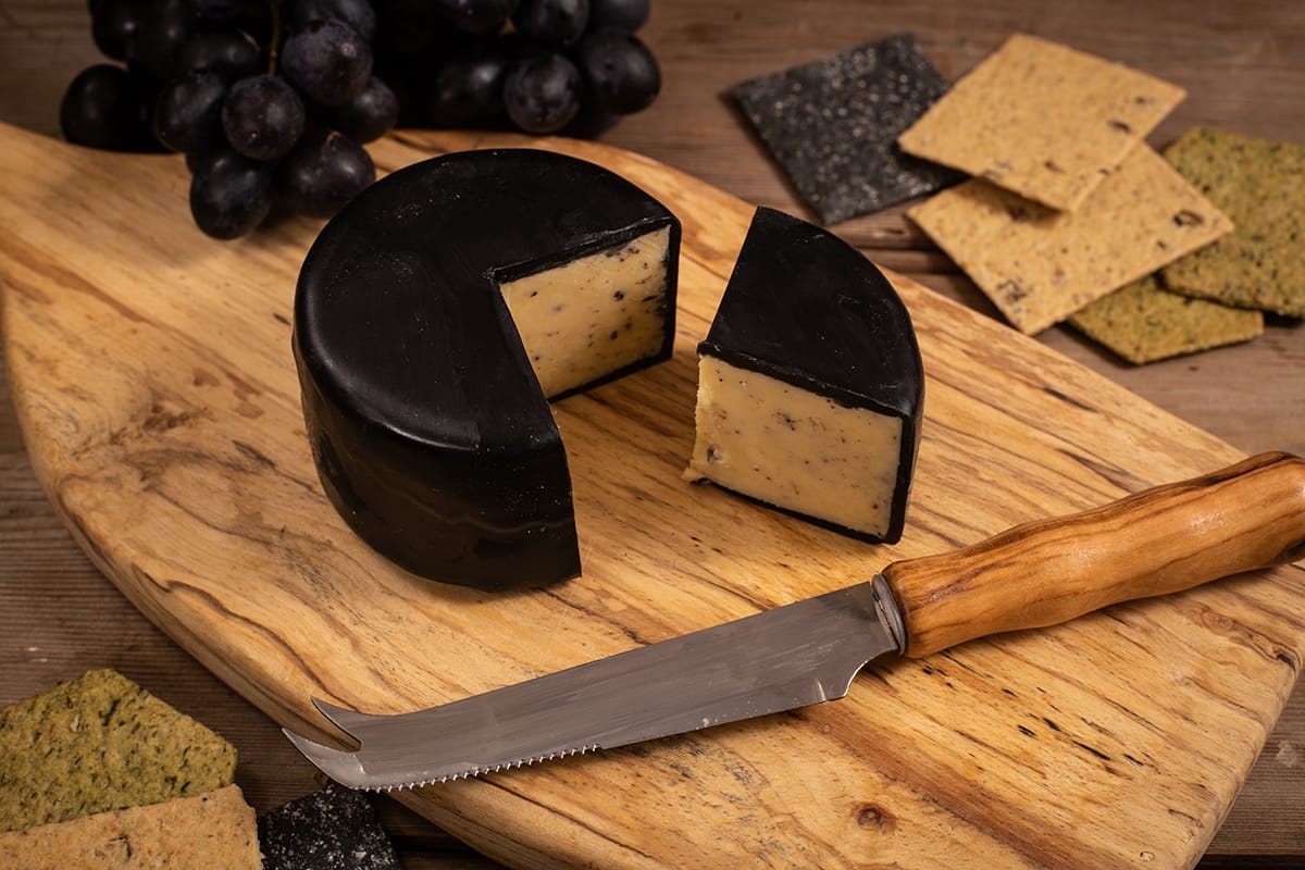 Sinh ra từ vùng đồng quê nước Anh – nơi cheddar được xem là niềm tự hào quốc gia – Truffle Noir kế thừa trọn vẹn nét đặc trưng cổ điển của phô mai cheddar: dẻo mịn, béo vừa, ngậy mà không ngán. Nhưng điều khiến loại phô mai này trở nên đặc biệt chính là sự xuất hiện của nấm truffle đen – “kim cương đen” trong thế giới ẩm thực, khi hai yếu tố này hòa quyện, một bản giao hưởng vị giác tinh tế được mở ra: cheddar mềm mượt, bùi béo và truffle đen nồng nàn, tạo nên chiều sâu hương vị không thể nhầm lẫn.