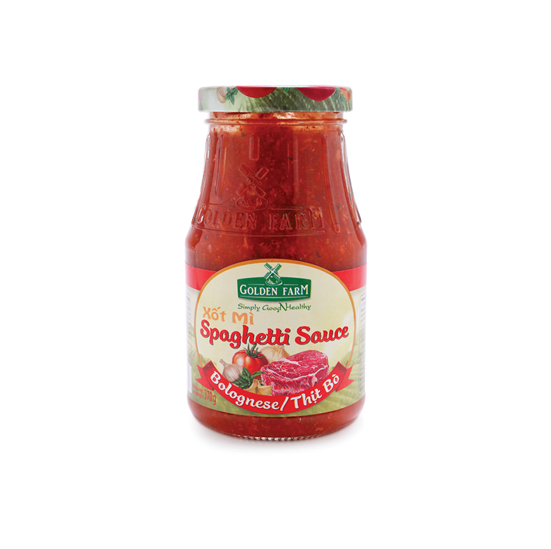 Sản phẩm được làm từ cà chua tự nhiên kết hợp với các loại gia vị khác như đường mía, muối, dầu thực vật, hành, tỏi, hồi, quế. Cà chua hòa với gia vị vừa phải tạo nên hương vị đặc biệt thơm ngon. Sốt mỳ spaghetti truyền thống Golden Farm có thể dùng với mỳ spaghetti hay có thể dùng làm lagu, bánh pizza, cơm chiên… sẽ thêm phần hấp dẫn.