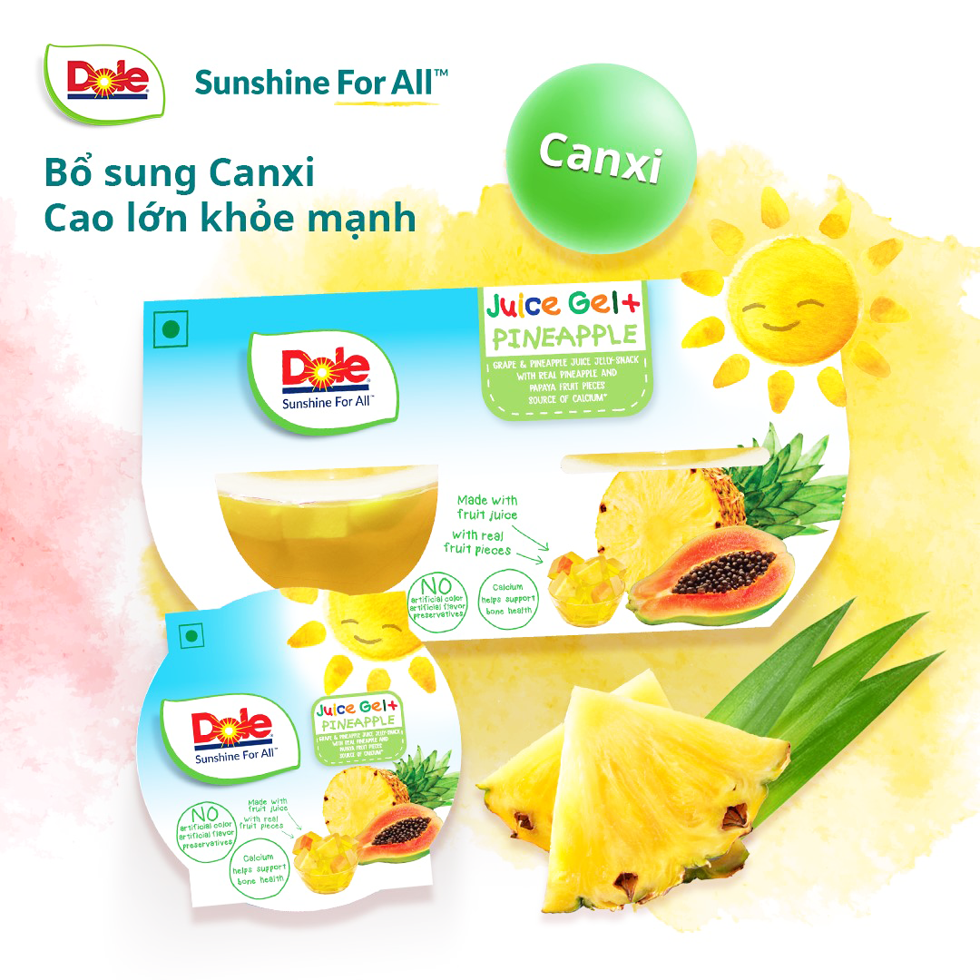 Với hàm lượng dinh dưỡng cao từ nước ép trái cây nguyên chất không thêm đường, giàu Vitamin và khoáng chất, đặc biệt không hương liệu và màu nhân tạo, không chất bảo quản, thạch trái cây Dole luôn được các bậc phụ huynh an tâm, tin tưởng lựa chọn cho các bé. Ngoài ra, thạch trái cây Dole còn “ghi điểm” với 3 lựa chọn đa dạng cho từng khẩu vị của bé: