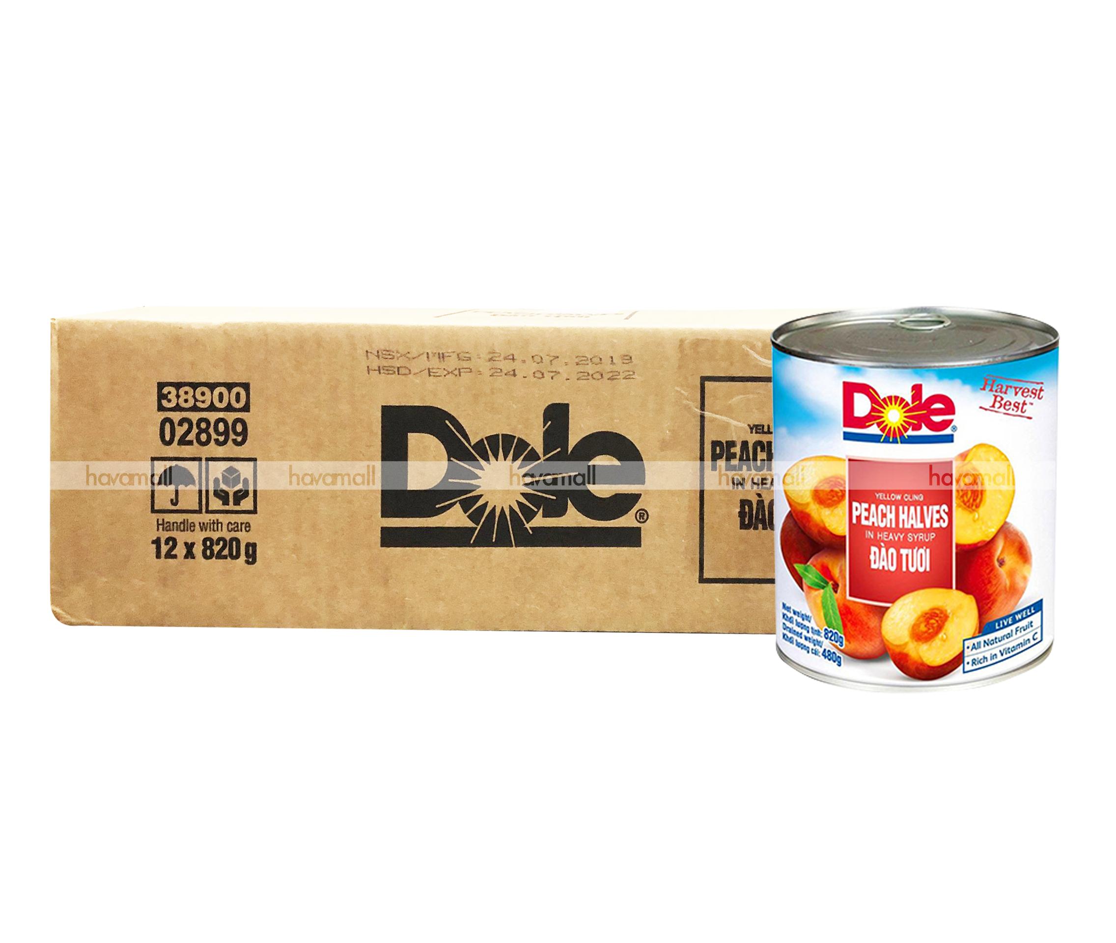Thùng 12 Lon Đào Ngâm Đường Dole 820g – Box 12 Cans of Peach Halves in Syrup