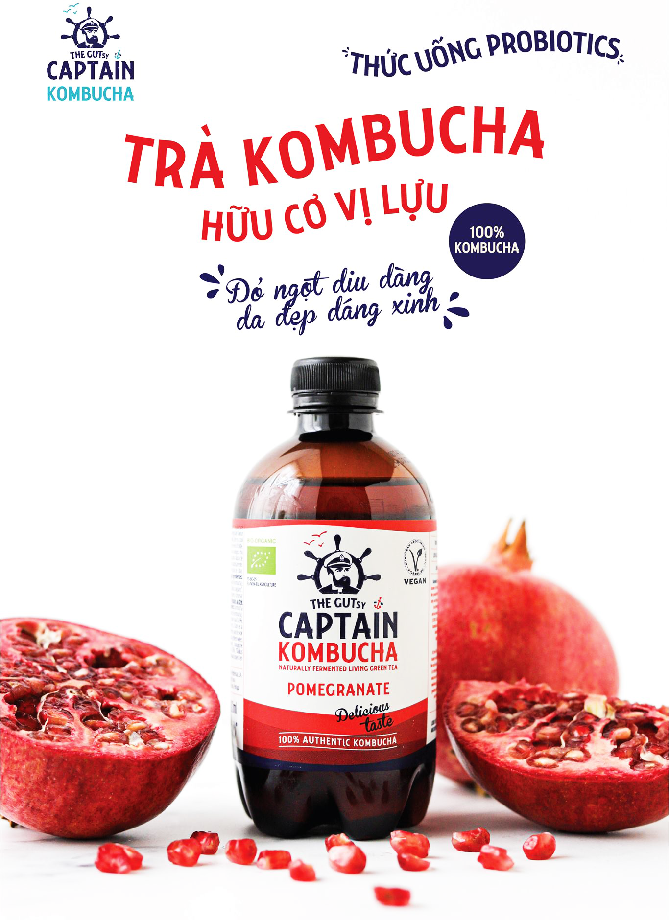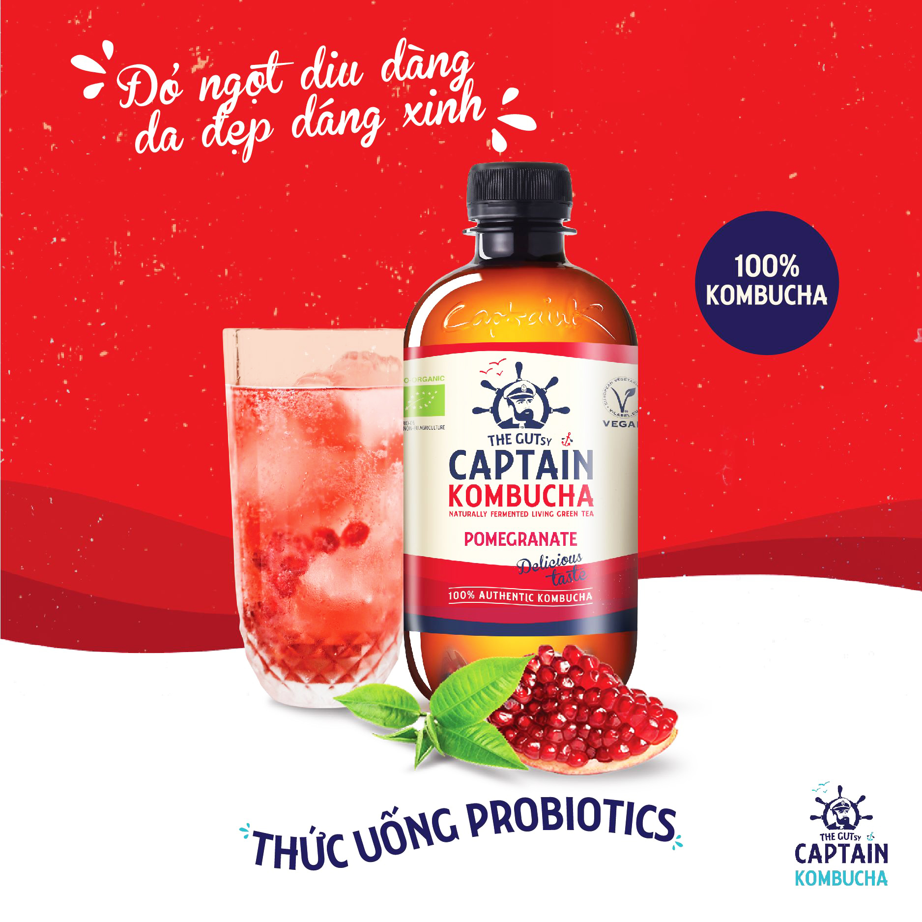 Home Shop THỰC PHẨM Sữa - Đồ uống Trà Dưỡng Sinh Kombucha Hữu Cơ Vị Lựu – The GUTsy Captain Kombucha Pomegranate 400ml