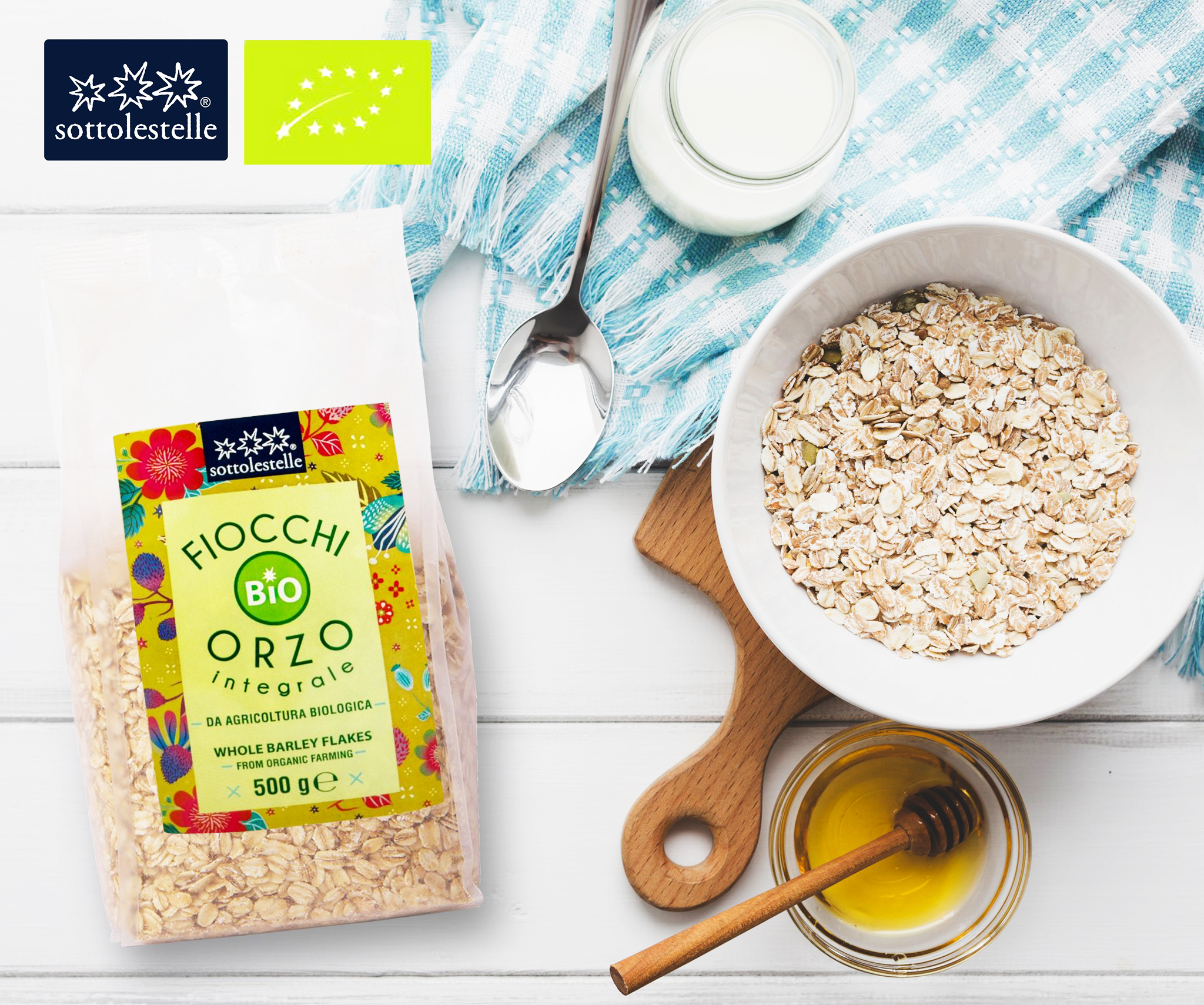 Ý Dĩ Nguyên Cám Hữu Cơ Cán Dẹp – Sottolestele Wholebarley Flakes 500G