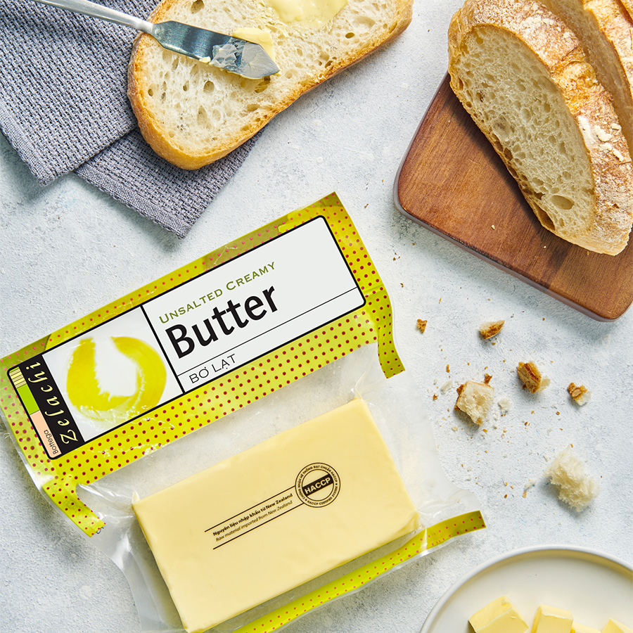 Bơ Lạt Nhập Khẩu New Zealand Zelachi – Zelachi Unsalted Butter không chỉ là nguyên liệu làm bánh quen thuộc mà còn là điểm nhấn để nâng tầm hương vị cho nhiều món ăn, mang lại trải nghiệm ẩm thực tinh tế, hiện đang được bán tại Havamall.