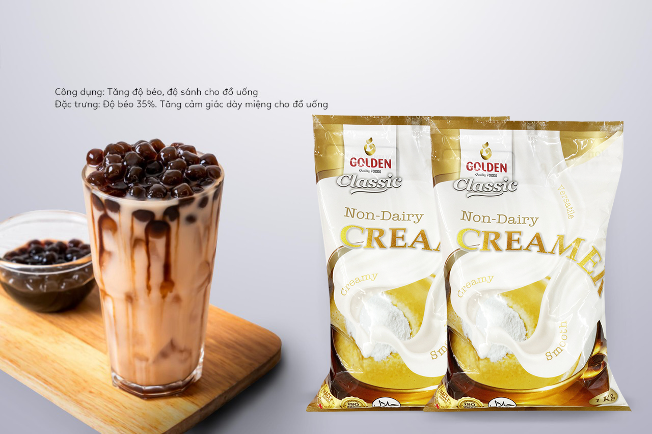 Bột kem béo thực vật (Non-dairy creamers) Golden Classic được sử dụng để cải thiện hương vị trong nhiều loại thực phẩm, chẳng hạn như sữa bột, trà sữa, sữa đậu nành, cà phê hòa tan, bột ngô ăn liền, ngũ cốc… Bột kem béo thực vật nếu được sử dụng đúng cách, với liều lượng vừa phải sẽ giúp bạn có một sức khỏe tốt hơn.