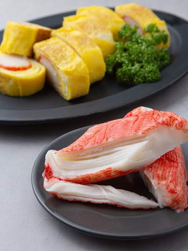 • Làm từ tinh bột và cá trắng nghiền mịn (surimi) đã được định hình và chế biến thành hình dạng thịt của chân cua tuyết.