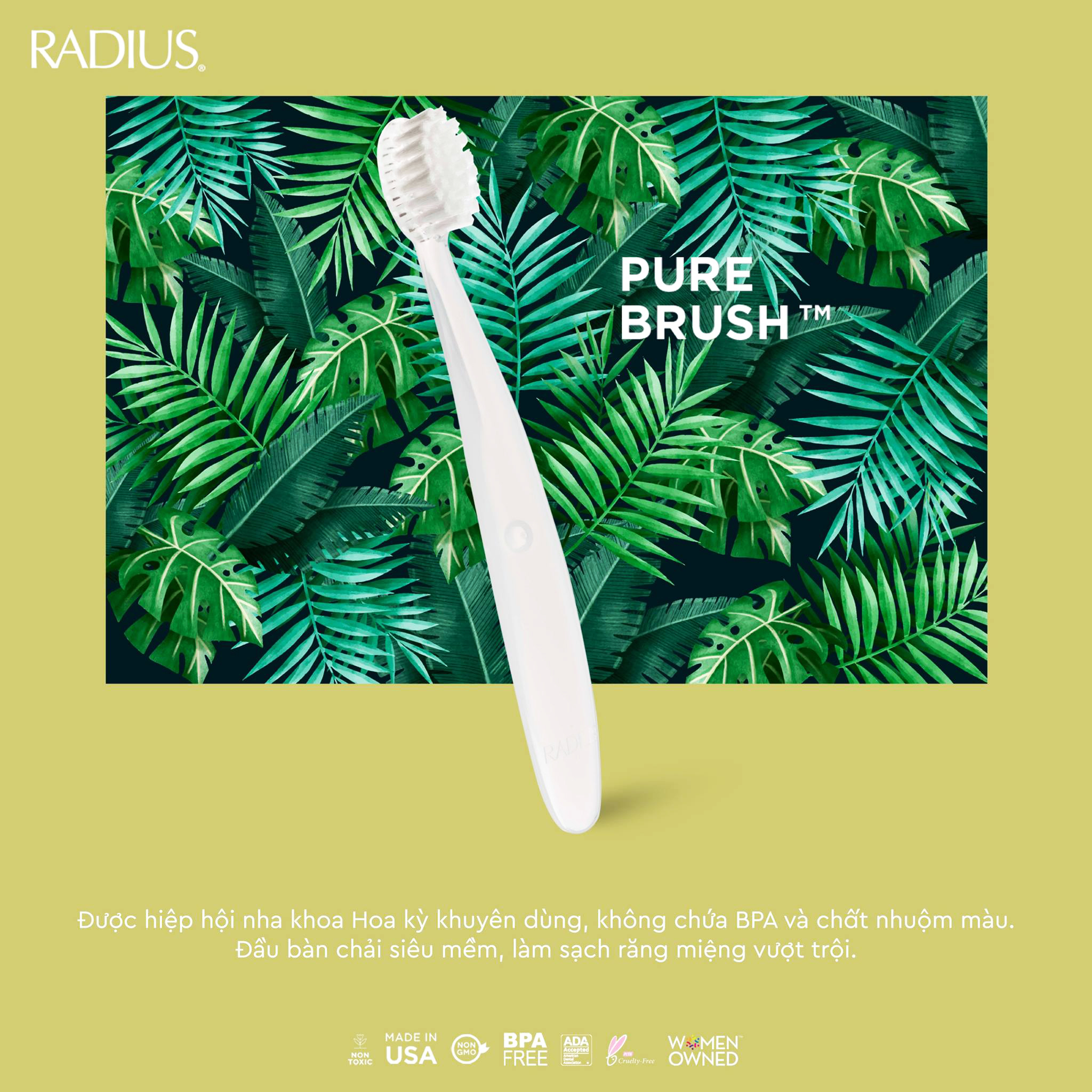 Sản phẩm được nhập khẩu chính ngạch, thông tin sản phẩm bằng Tiếng Việt được in trên nhãn phụ và được dán ở mặt sau bao bì bàn chải RADIUS.