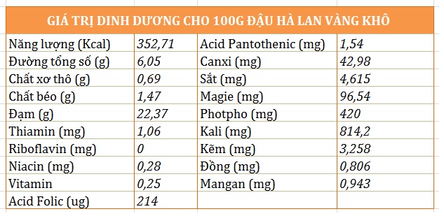Bên cạnh đó, Đậu Hà Lan vàng bổ sung dinh dưỡng hằng ngày cho mỗi cơ thể sống ở mọi lứa tuổi, mọi giới tính…Đặc biệt hơn nữa là chăm sóc trẻ em còi cọc, béo phì, phụ nữ mang thai, phụ nữ đang cho con bú, người bệnh, người già….Sử dụng Hạt Đậu Hà Lan là một lựa chọn thông thái trong mọi thời đại.