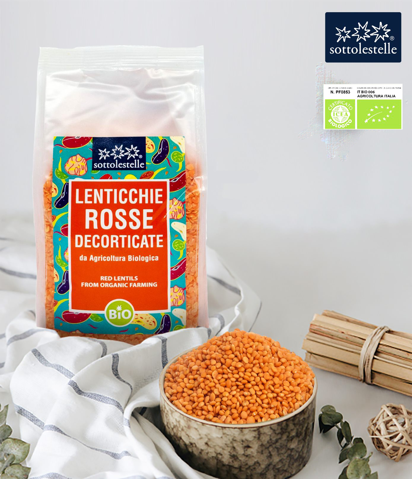 Đậu Lăng Đỏ Hữu Cơ – Sottolestelle Organic Red Lentils 500g