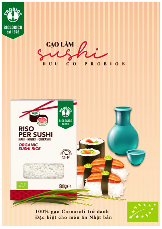Gạo Probios sushi là loại gạo tròn hữu cơ chất lượng của Ý, hoàn hảo để chế biến món sushi tự làm của bạn. Tính nhất quán của nó có được từ quá trình chế biến cẩn thận khiến nó trở nên lý tưởng để chế biến tất cả các biến thể của sushi, từ maki, nigiri, đến chirashi.
