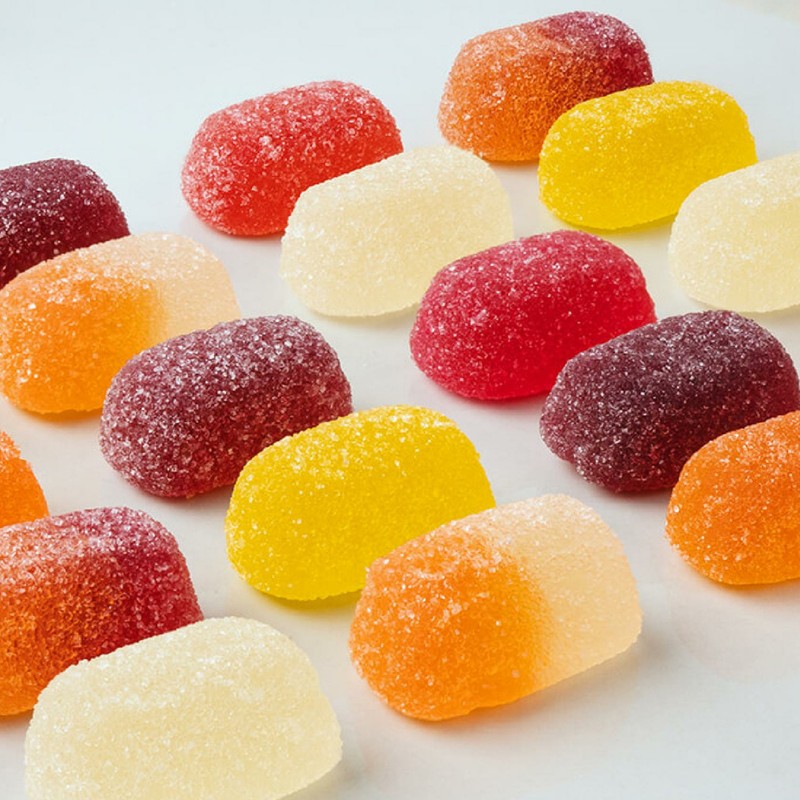 Kẹo Gran Gelées sở hữu kết cấu “Gelée” đặc trưng của Ý – một dạng kẹo dẻo mịn từ pectin trái cây, khác biệt hoàn toàn với loại kẹo dẻo sử dụng gelatin công nghiệp thông thường.
