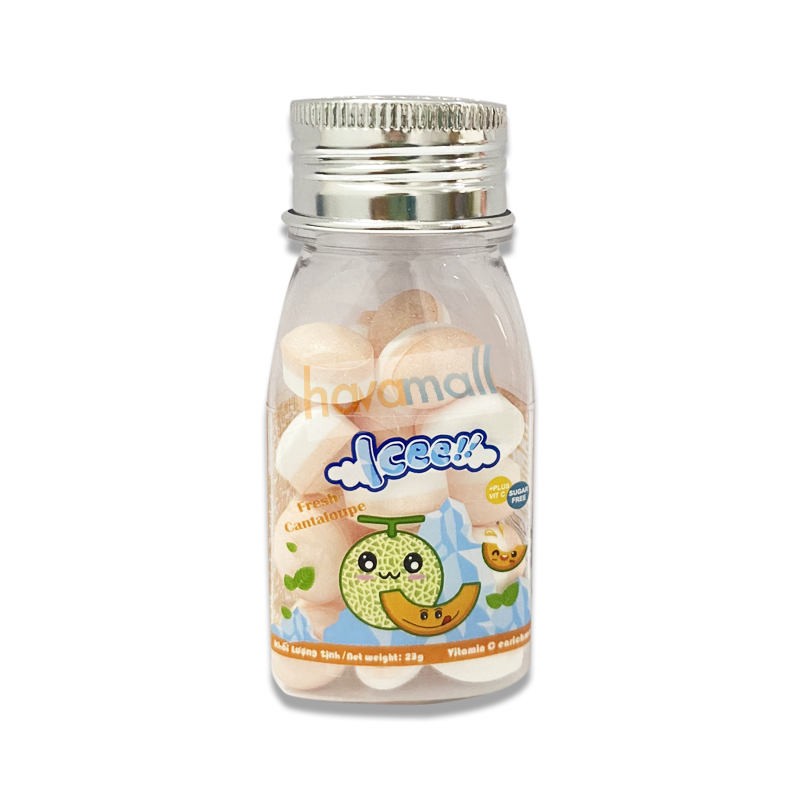 - Thành phần: Chất tạo ngọt, hương dưa lưới tổng hợp, tinh dầu bạc hà, vitamin C,…