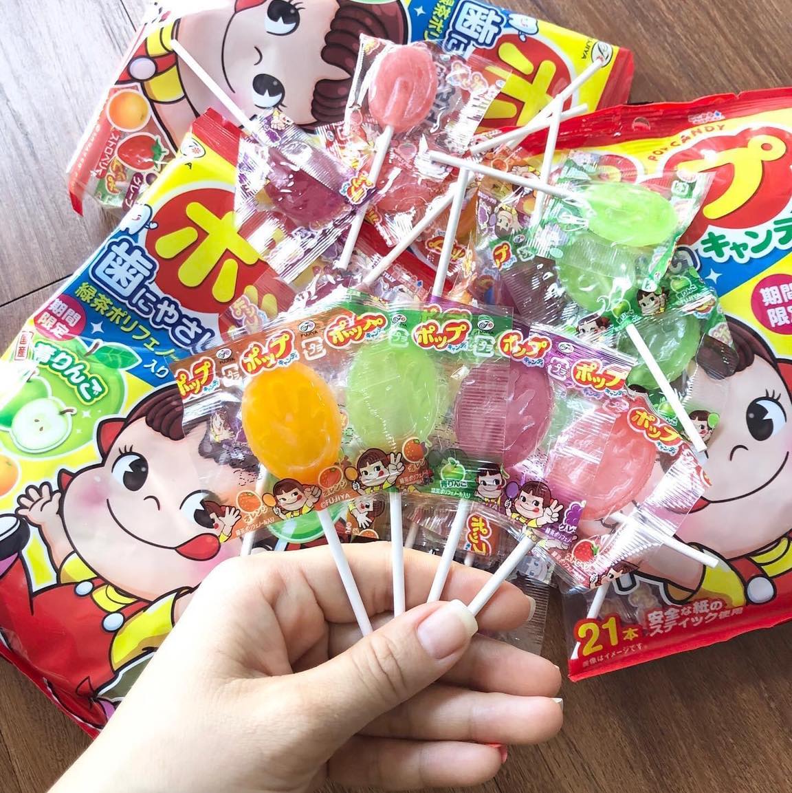 Kẹo Mút Hỗn Hợp 4 Vị Chiết Xuất Trà Xanh Nhật Bản Fujiya 20 Que/122g – Pop Candy Mixed Fruits and Melon Soda hiện đang được bán tại Havamall