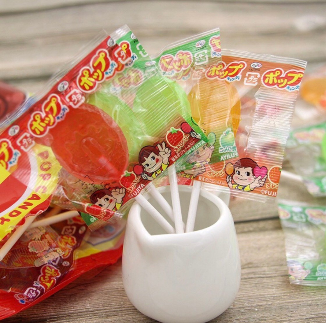 Kẹo Mút Chống Sâu Răng 4 Vị Trái Cây Nhật Bản Fujiya 20 Que/122g – Pop Candy Mixed Fruits and Melon Soda