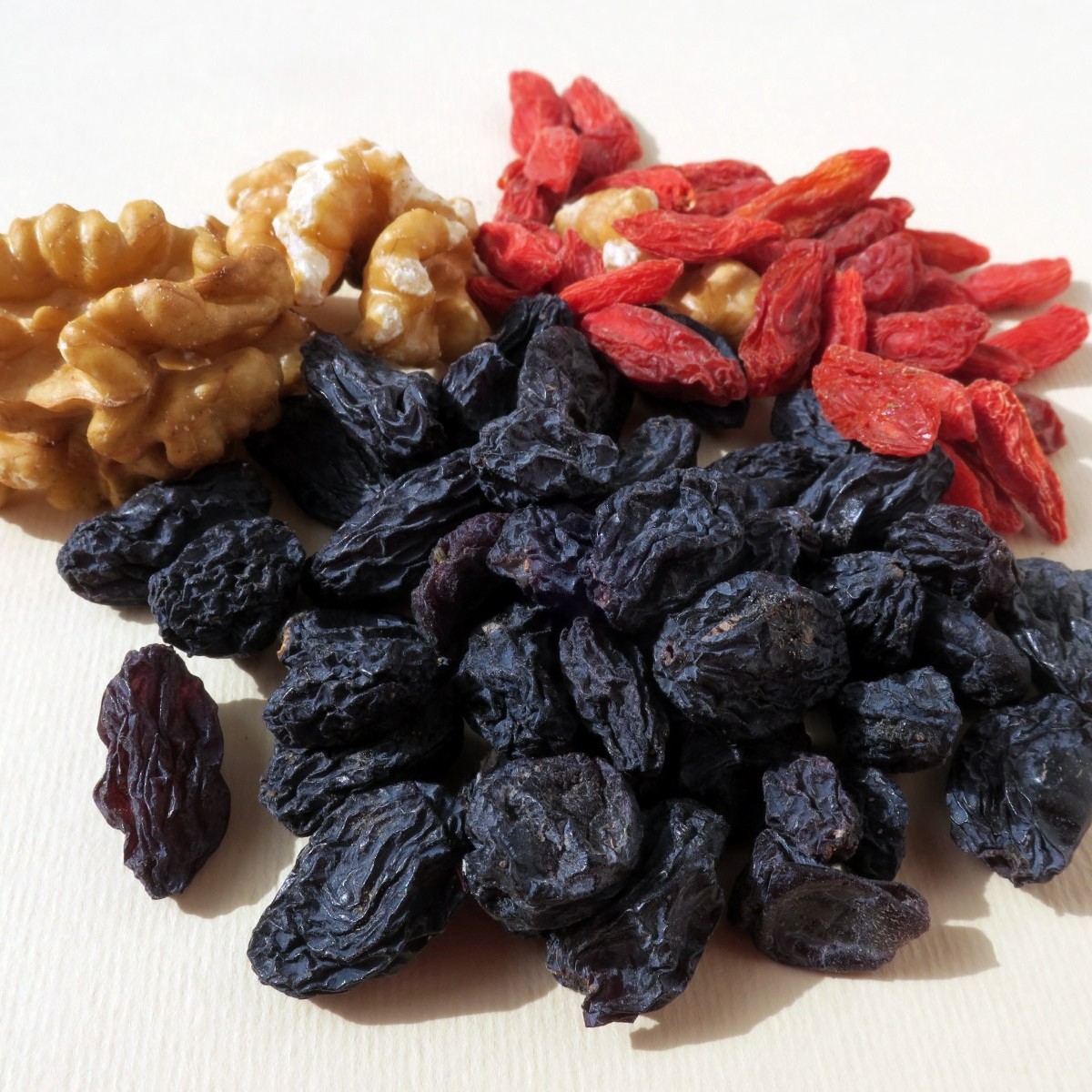 – CHỐNG OXY HÓA MẠNH MẼ VÀ TĂNG CƯỜNG SỨC KHỎE MẮT: Màu đen sẫm của nho khô là do Anthocyanin, một loại chất chống oxy hóa cực mạnh, giúp bảo vệ tế bào khỏi sự phá hủy của các gốc tự do. Anthocyanin cũng được nghiên cứu về khả năng hỗ trợ thị lực và bảo vệ mắt khỏi các bệnh thoái hóa liên quan đến tuổi tác.