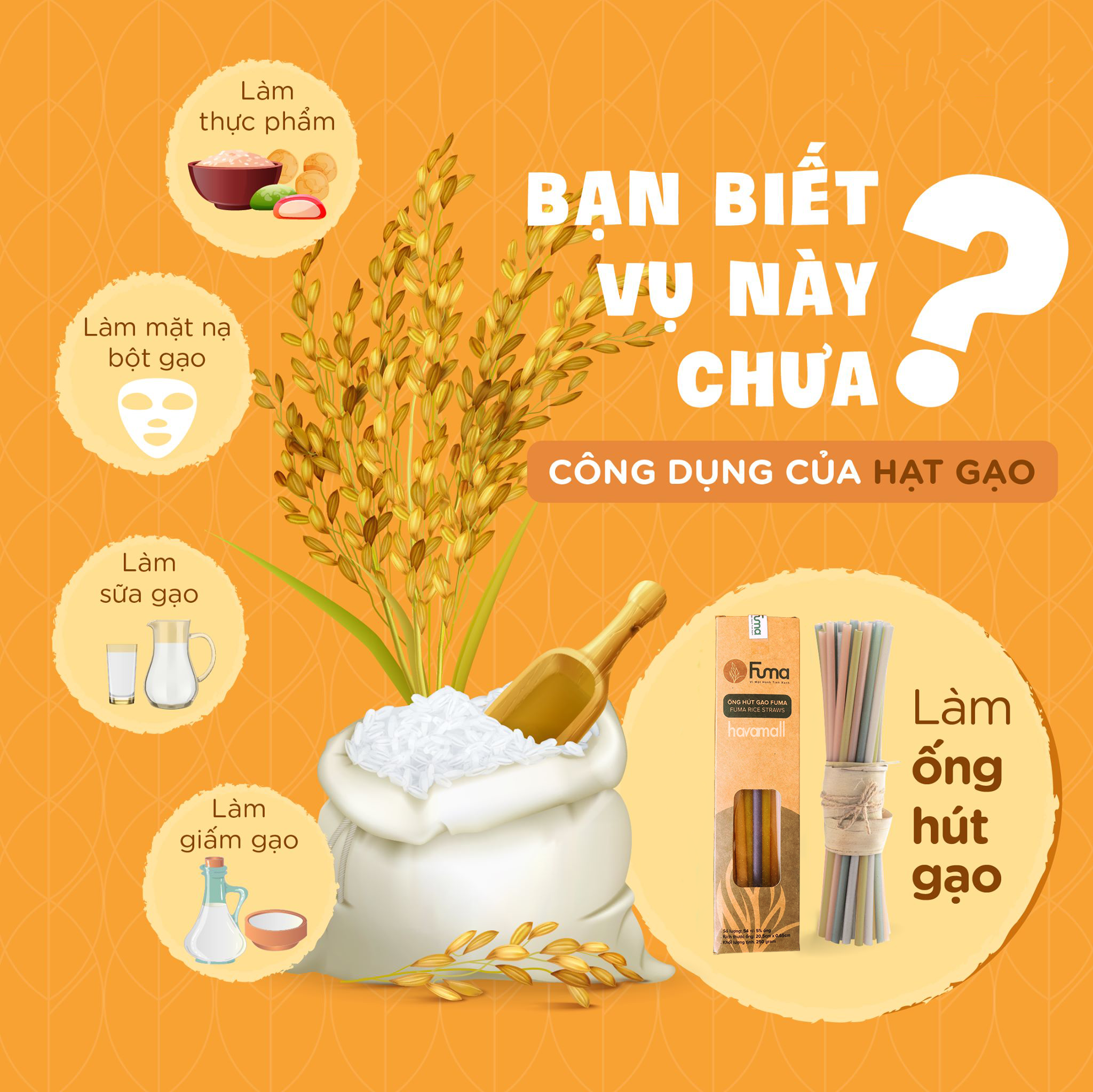 Ống hút gạo Fuma được chế tạo tại làng bột truyền thống Sa Đéc, được dùng để thay thế các loại ống hút nhựa trong các món nước uống như cafe, nước ép trái cây, sinh tố hoặc trà… Sản phẩm có thể dùng trong thức uống nóng lạnh đều được, thời gian hơn 1 tiếng.
