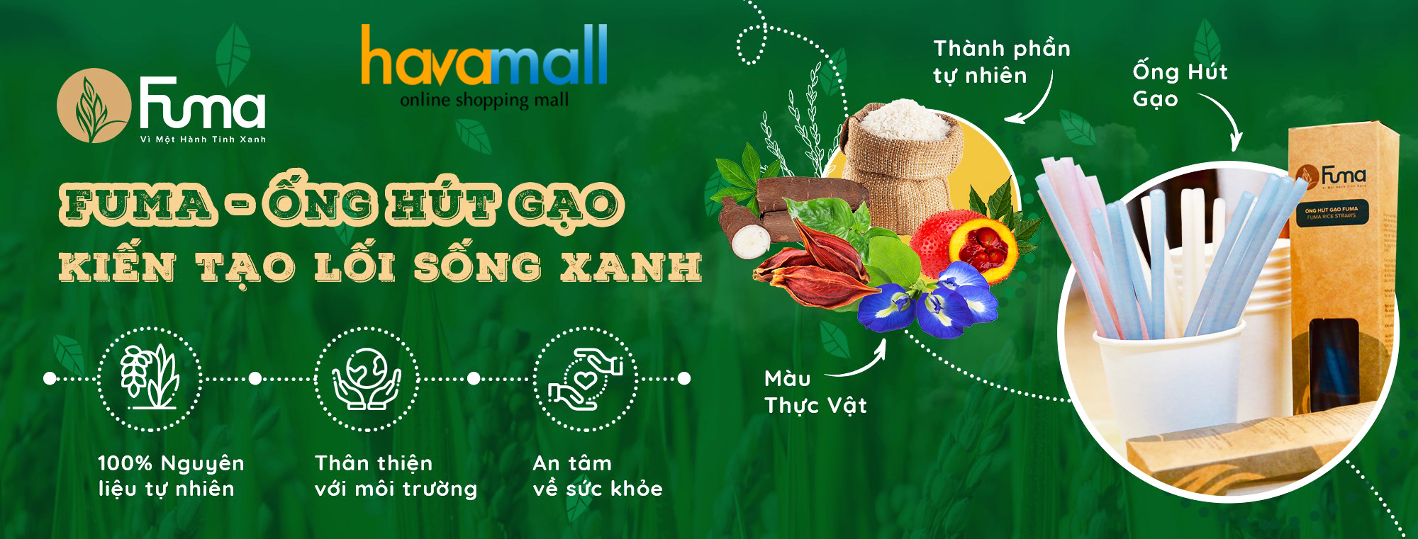 Ống hút gạo nhãn hiệu Fuma được làm từ bột gạo – không sử dụng nhựa hoặc hóa chất trong quá trình sản xuất và những ống hút này có thể phân hủy hoàn toàn trong bất kỳ môi trường nào – làm giảm tác động lên môi trường.