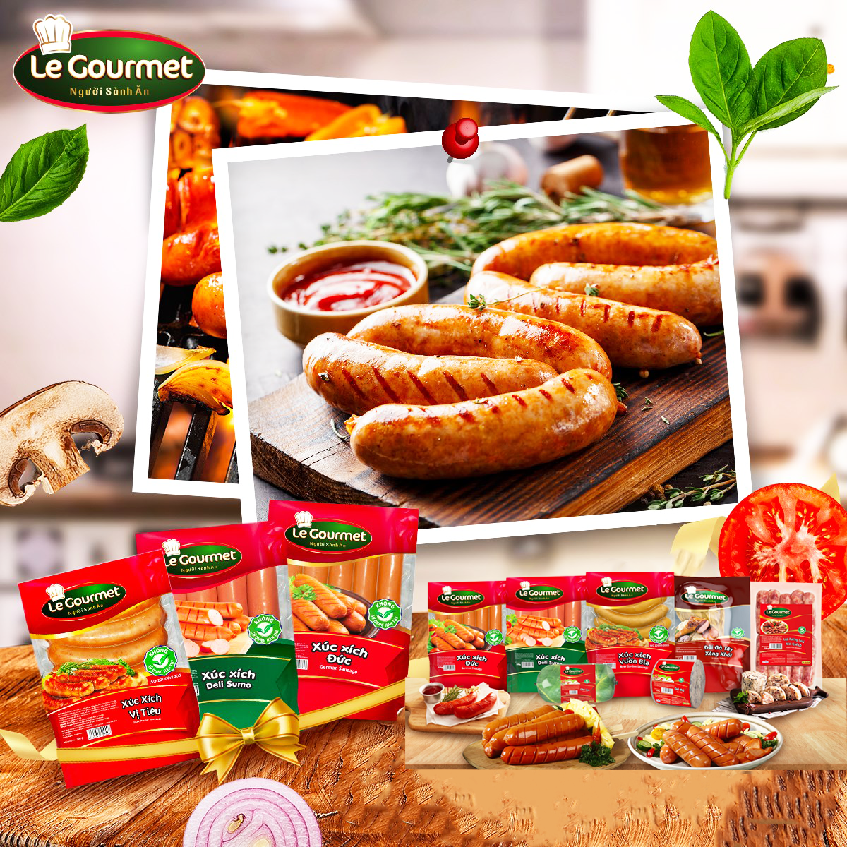 Xúc xích của nhà Le Gourmet luôn được đảm bảo bởi khâu tuyển chọn nguyên liệu gắt gao, từ nguồn thịt heo chất lượng cao đến gia vị tẩm ướp chọn lọc. Mang hương vị thơm ngon, tiện dụng, nhanh chóng, xúc xích Deli là sự lựa chọn hàng đầu cho các bạn nội trợ.